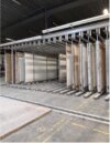 Le bâtiment est alors stocké verticalement sous forme d’éléments planes (en 2D) qui seront transportés sur chevalets en vue d’être assemblés sur chantier dans des délais record.
